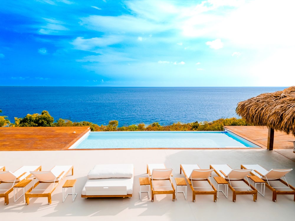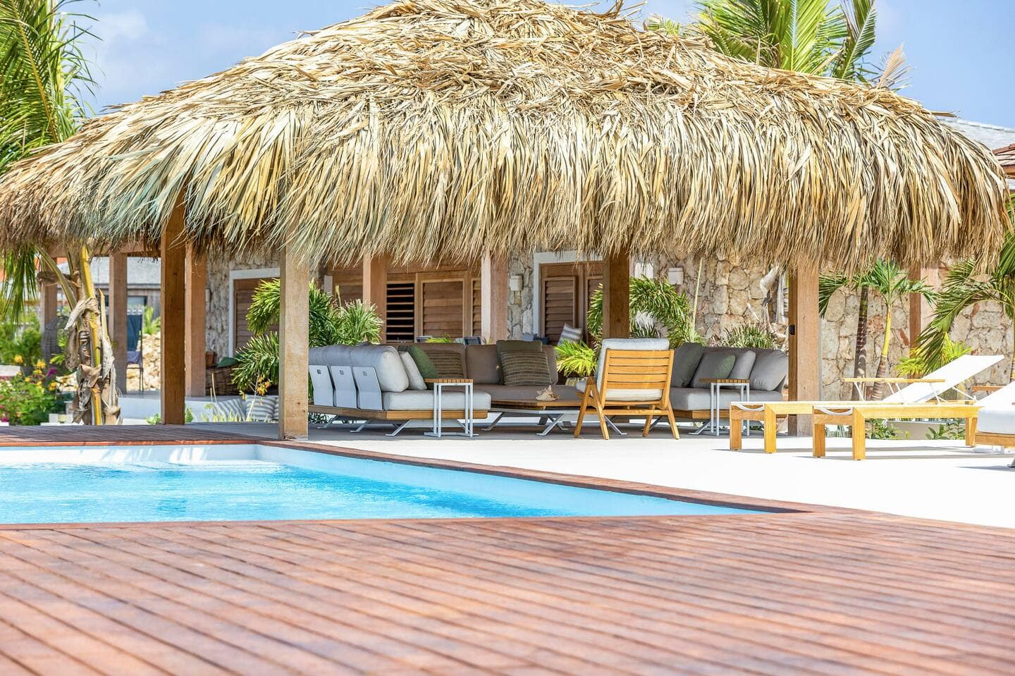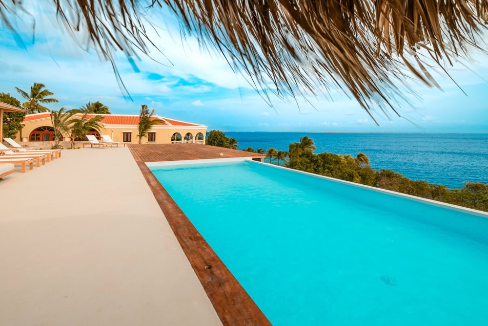 This luxury villa includes 5 bedrooms, 5 bathrooms right on the coast of Bonaire. It has a large private deck, an extra outdoor kitchen, and a large pool for refreshing dips.