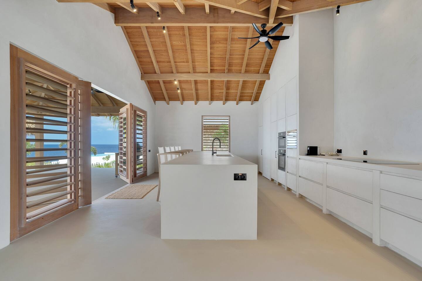 This brand-new Crown West Island Villa is eco-consciously crafted from reclaimed hardwood and offers amazing views from the top of the hill in Sabadeco. Nestled in the heart of nature, where breathtaking ocean views meet stunning mountain landscapes. Surrounded by lush greenery and tropical birds, this tranquil retreat offers the perfect escape from the hustle and bustle of everyday life. With a large living room, the interior and furniture are of the highest quality, including a luxury kitchen and appliances.