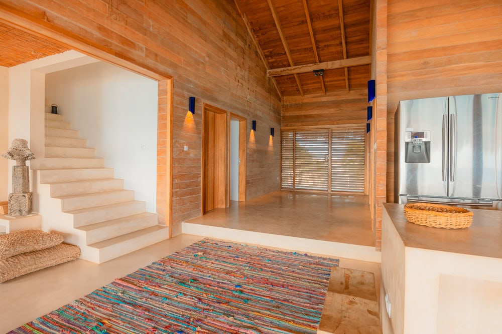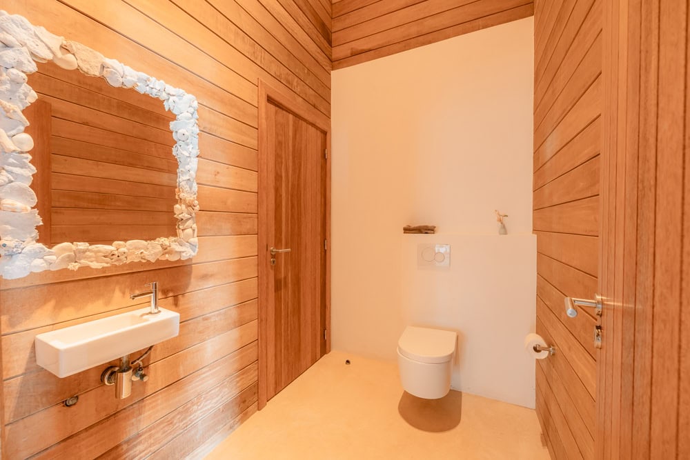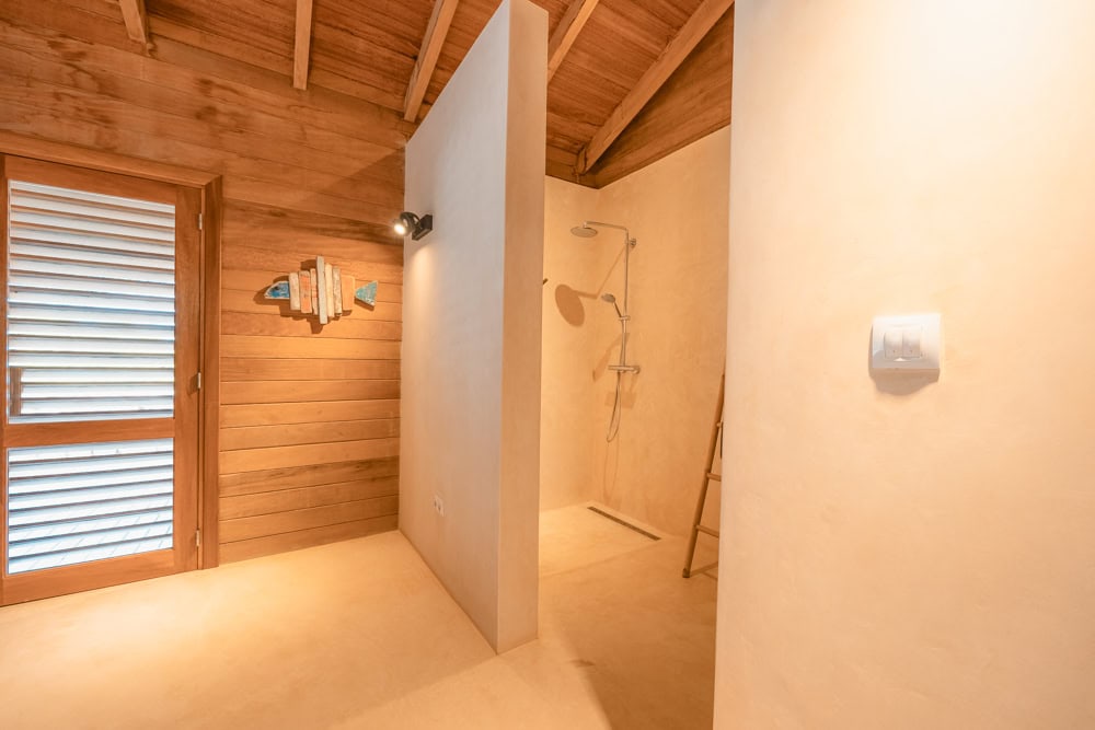 The Eco Beach House 4 is the last Kralendijk Beach House going South, 3 miles from Bonaire Airport and thus has 270° free views, of which 180° ocean view. This is the best spot in Bonaire, according to many guests. Nature, close to it all, ocean life and free views are the perfect combination. The house is made of tropical hardwood, coral stone and concrete. It has a fantastic wind through design but also 4 air-conditioned bedrooms. This property is described in a few words: Beach Front, Cool Breeze, Design, Pool, Deck, Shade, Ocean life. This is a very Luxurious fitout, and every detail is high end.