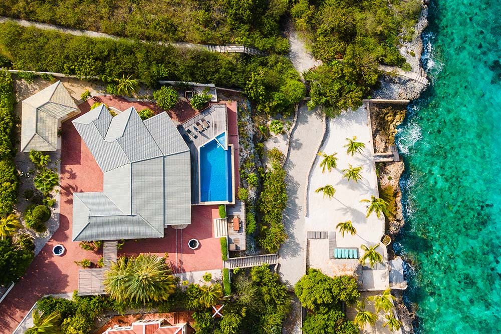 The Shores Beach Villa Beachfront Luxury Villa is thé Sabadeco Beach Villa on Bonaire. With your own private beach, you can experience unique luxury living on Bonaire. This 40.000 square feet lot includes a spacious Villa & guesthouse, accommodating for up to 10 guests. Enjoy seclusion in a tranquil setting, a truly unique gem on Bonaire Island.